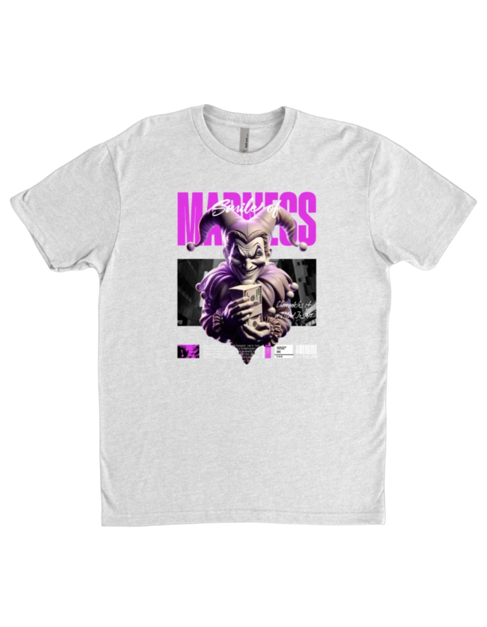 Transform your wardrobe with our Smile of Madness T-shirt! Made with high-quality materials, this comfortable and stylish tee will make you stand out from the crowd. Show off your unique personality and embrace the madness with this must-have piece. Get yours now and spread the madness with a smile!